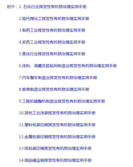 為深入推進2020年揮發(fā)性有機物治理攻堅,按照部領(lǐng)導(dǎo)“送政策、送技術(shù)、送方案”要求,生態(tài)環(huán)境部近日在《揮發(fā)性有機物治理實用手冊》基礎(chǔ)上,編制了石化、化工、工業(yè)涂裝、包裝印刷及油品儲運銷等14個行業(yè)(領(lǐng)域)的揮發(fā)性有機物治理實用手冊(分冊),便于地方生態(tài)環(huán)境部門和有關(guān)企業(yè)學習借鑒。